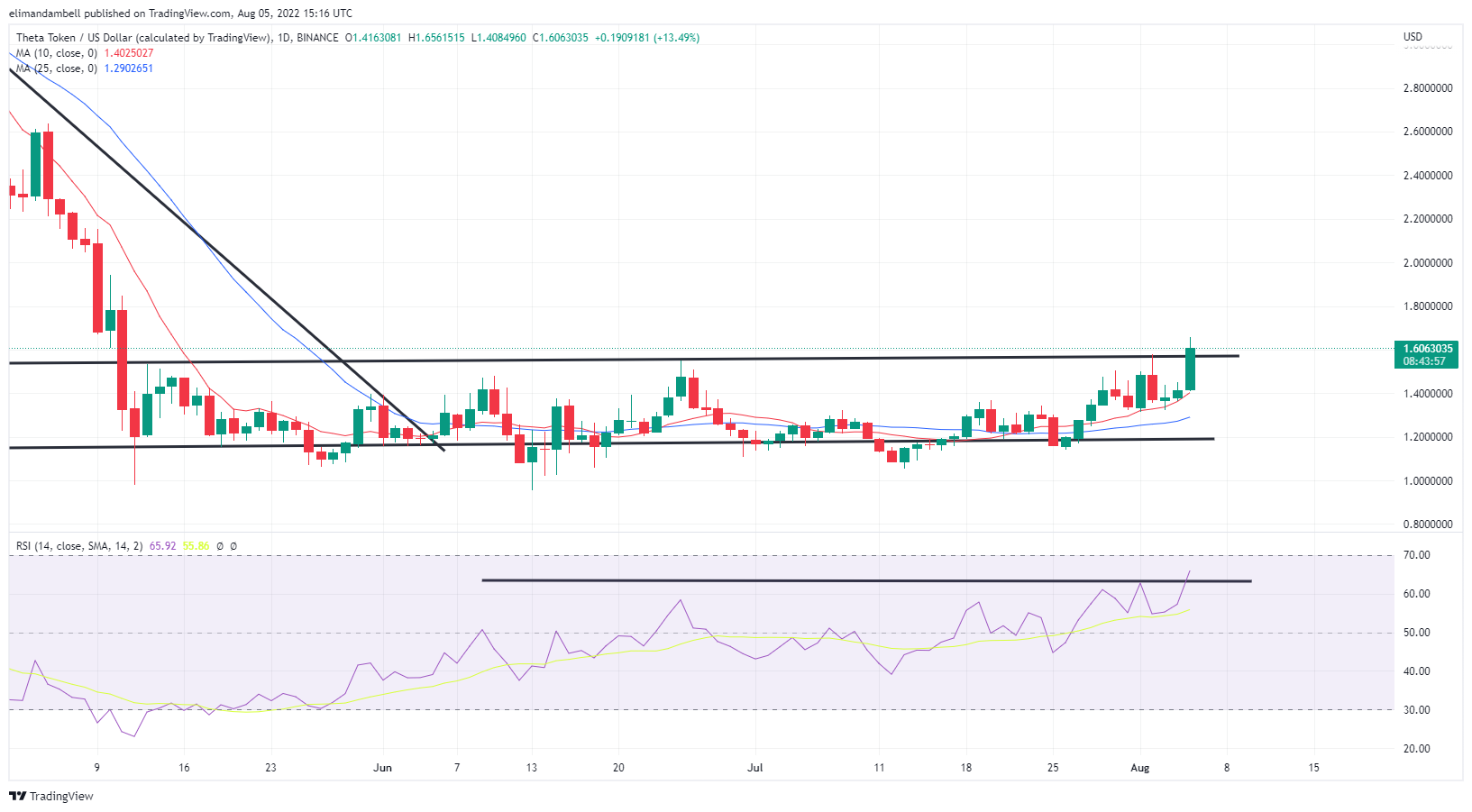Looking at the chart, the move came as THETA broke out of its key